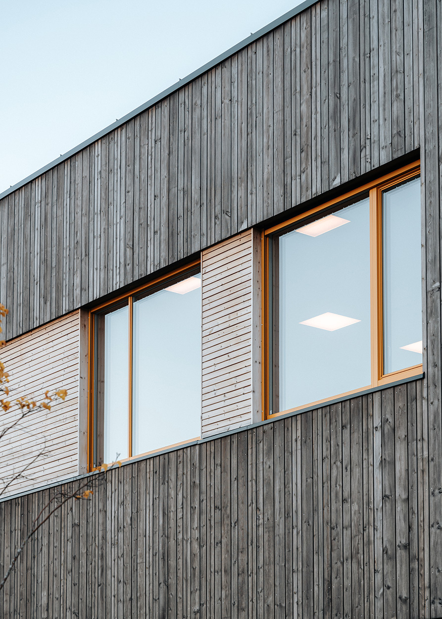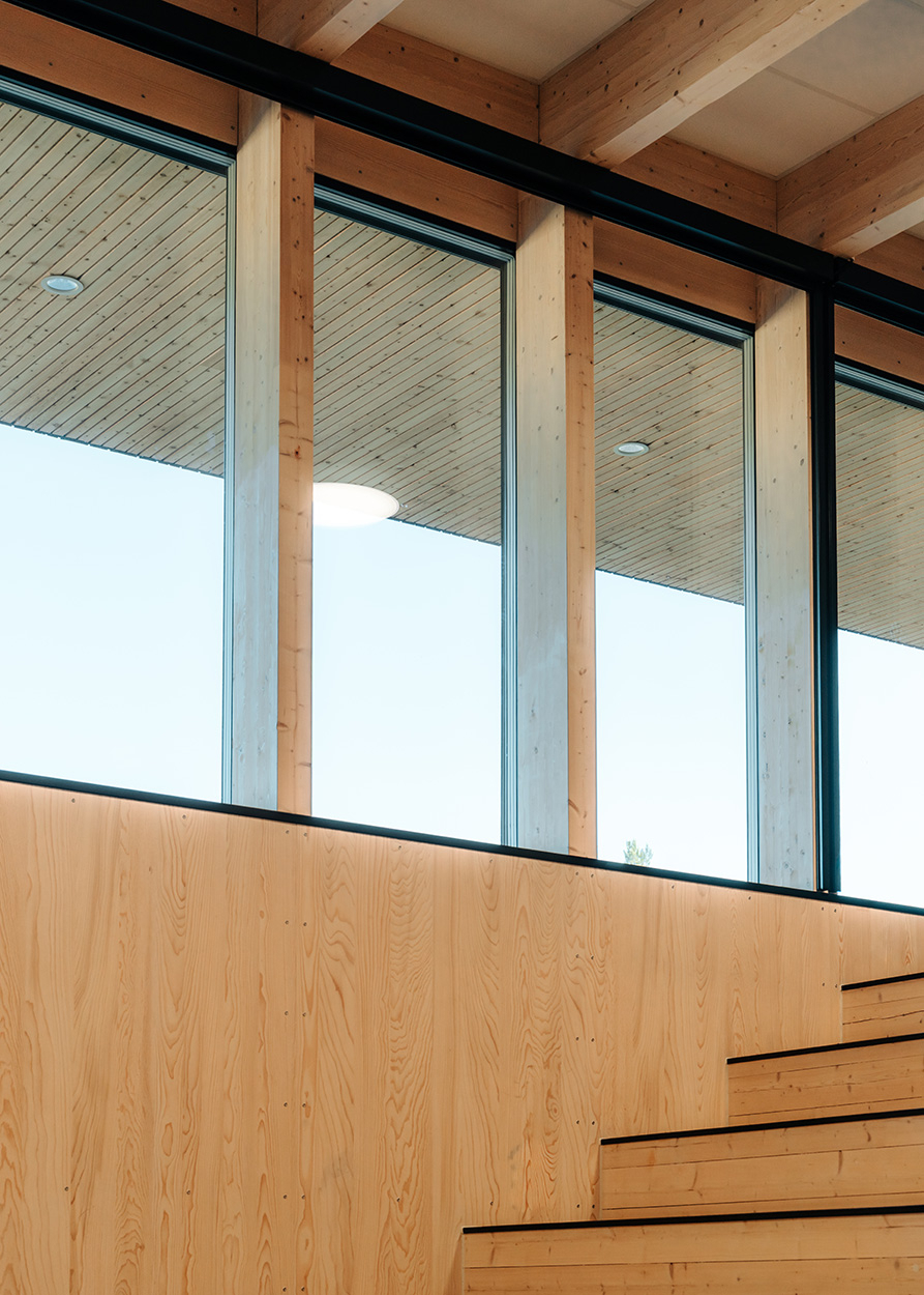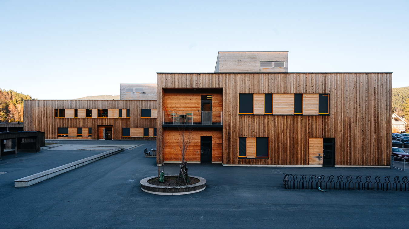 Skolen er oppført i massivtre, og har to fløyer knyttet sammen av et åpent amfi, som beskrives som skolens hjerte. Prosjekteringsunderlaget er basert på plusshus. Prosjektet har oppnådd BREEAM-NOR klassifiseringen «Good».